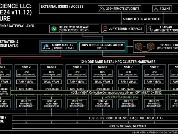 Bare Metal Applied Science has engineered the definitive solution: a 12-Node, 48-GPU cluster utilizing Linux Containers (LXC/LXD), Slurm workload orchestration, and ultra-high-speed NVLink/NCCL fabrics.